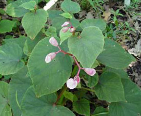 The leaves of this plant are shaped like an angel wing begonia. It normally blooms in late spring to frost. The flowers of this begonia are pale pink held loosely above the leaves. There are tiny bulb-like tubers that appear at the leaf joints in late summer. These can be used to increase your stock or to pot up and share with a fellow gardener. This plant needs shade and moist well-drained soil.